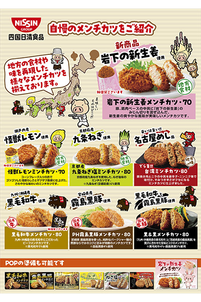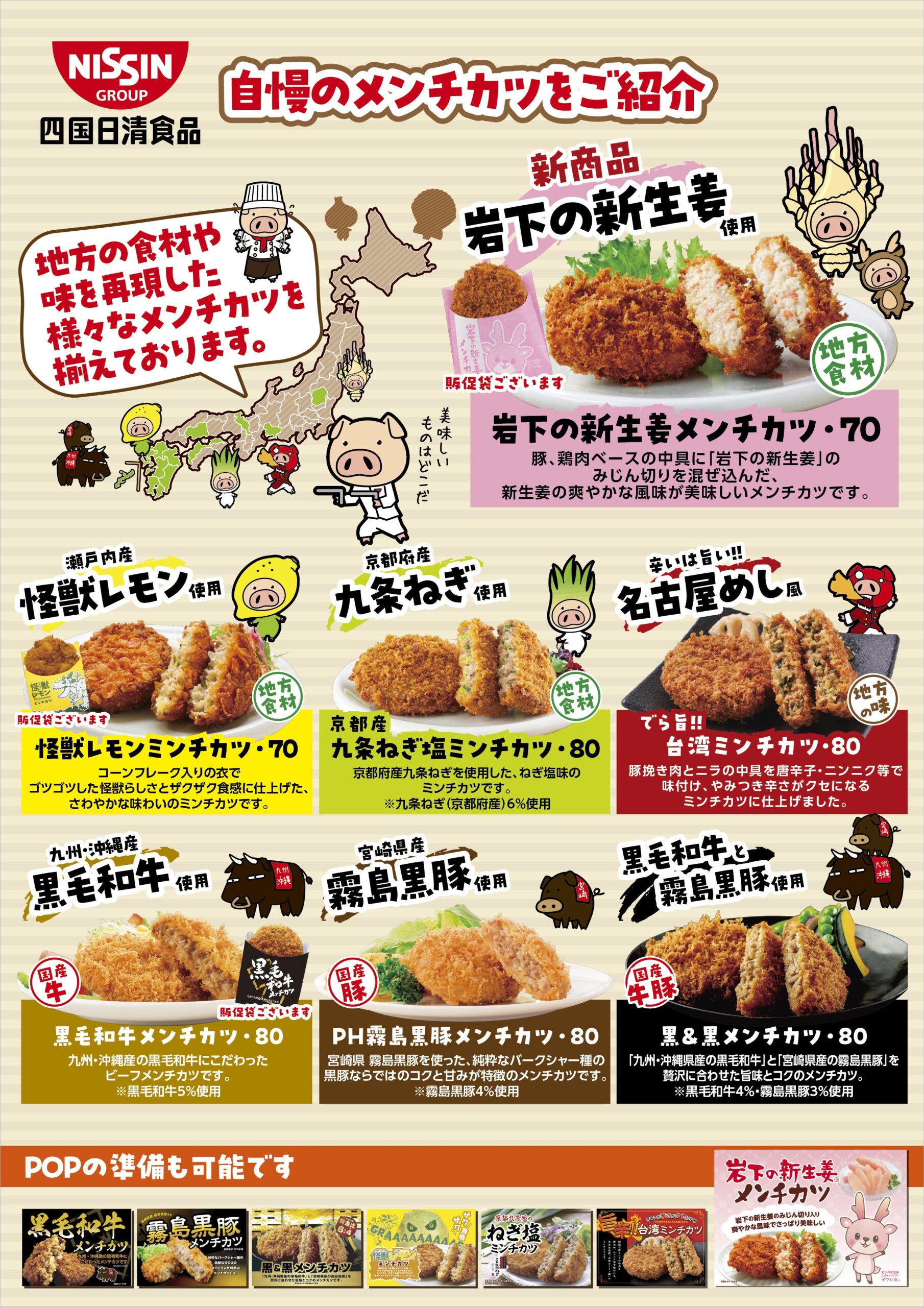 ② 当社の看板商品「ご当地メンチカツシリーズ」が好評発売中です。