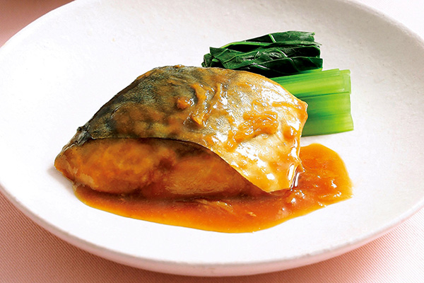 骨を丁寧に取り除いたさばに、かつおの旨味を加えた醤油ベースのタレと千切り生姜をたっぷり使い、バランスの良い煮魚に仕上げました。自然解凍可能な商品で、お弁当・給食等幅広いユーザーに人気の商品です。