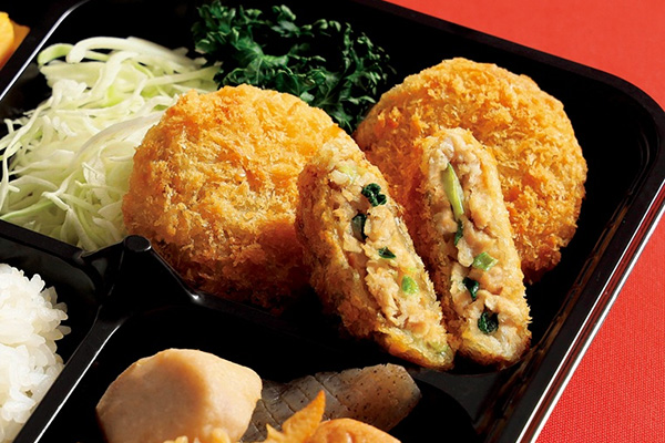 餃子をイメージしたメンチカツです。豚肉・キャベツ・ニラを使用しインパクトのある味に仕上げました。