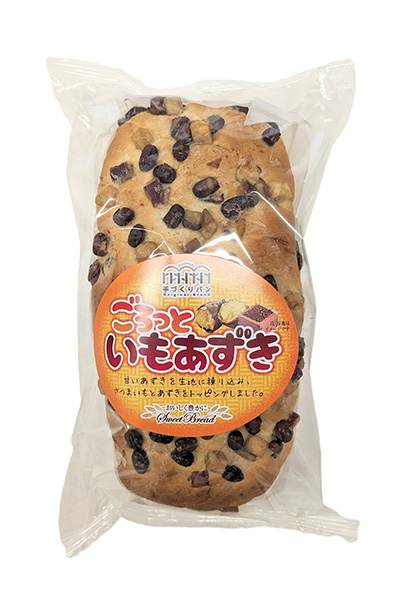 甘いあずきを生地に練り込み、さつまいもとあずきをトッピングしました。