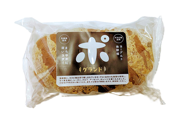 ヨーグルト乳酸菌を使用し、ライ麦生地にレーズン、クルミ、アーモンド、オレンジを練り込みました。