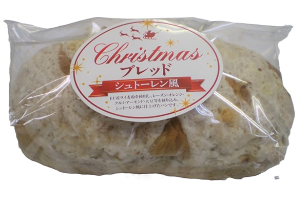 ライ麦生地にレーズン・オレンジ・クルミ・アーモンド・大豆等を練り込み、シュトーレン風に仕上げたパンです。