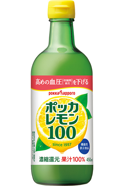 50年以上のロングセラー商品であるポッカレモン100そのもので、臨床試験研究を行った結果に基づき「高めの血圧(収縮期血圧)を下げる」機能性表示食品としてバリューアップしました。中身はこれまでのまま、濃縮還元レモン果汁100%。